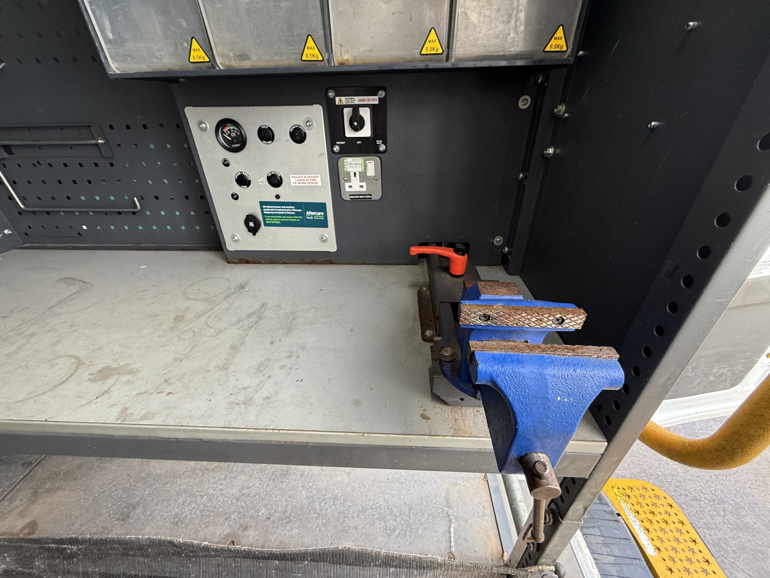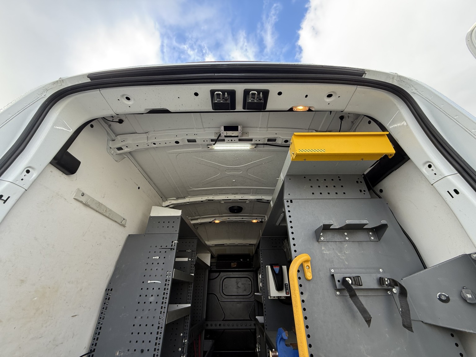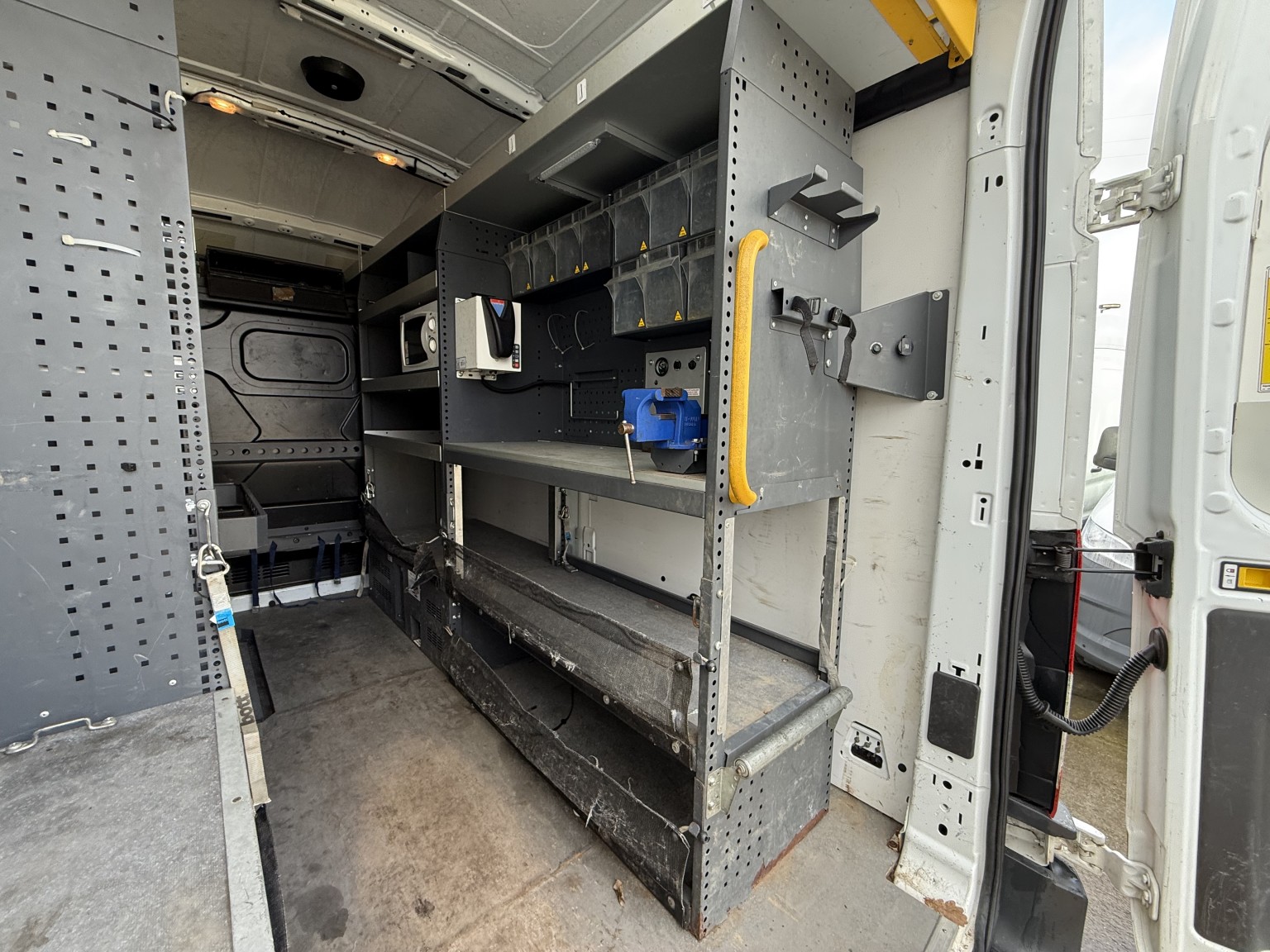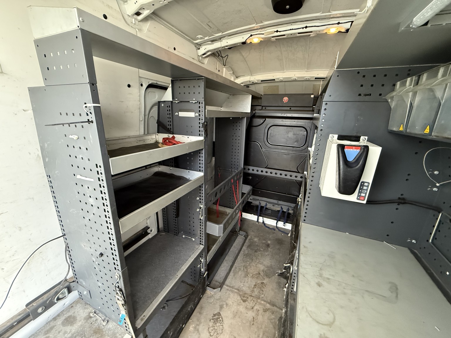 • Professionally fitted high quality racking system with onboard power (untested) ideal for equipment, tools, and easily removable if not required.